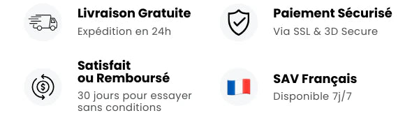 Si vous changez d’avis ou si le produit ne vous convient pas, vous disposez de 14 jours après réception pour nous le retourner et obtenir un échange ou un remboursement complet.
